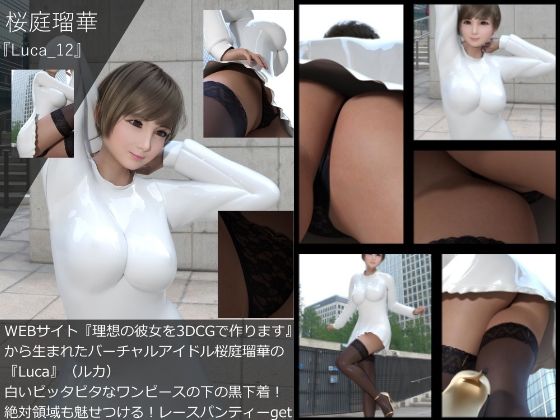 3DCGWEBサイト『理想の彼女を3DCGで作ります』から生まれた写実的ヴァーチャルアイドル女優「桜庭瑠華」の写真集です。表紙を含めて全56ページです。ピタピタのワンピースに巨乳とむっちり脚をおさめ色気を振り撒く!大元の画像が横1820×縦2570ピクセルのため、作品本体はPDFですがかなりの拡大に耐えます。